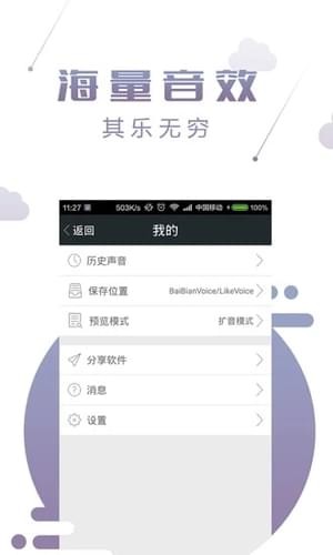 2.多种变声效果可选:爷爷、大叔、萝莉、小孩、幽灵、机器人。。.。。. 变声时只需轻轻一点,让你成为自带BGM的潮人;