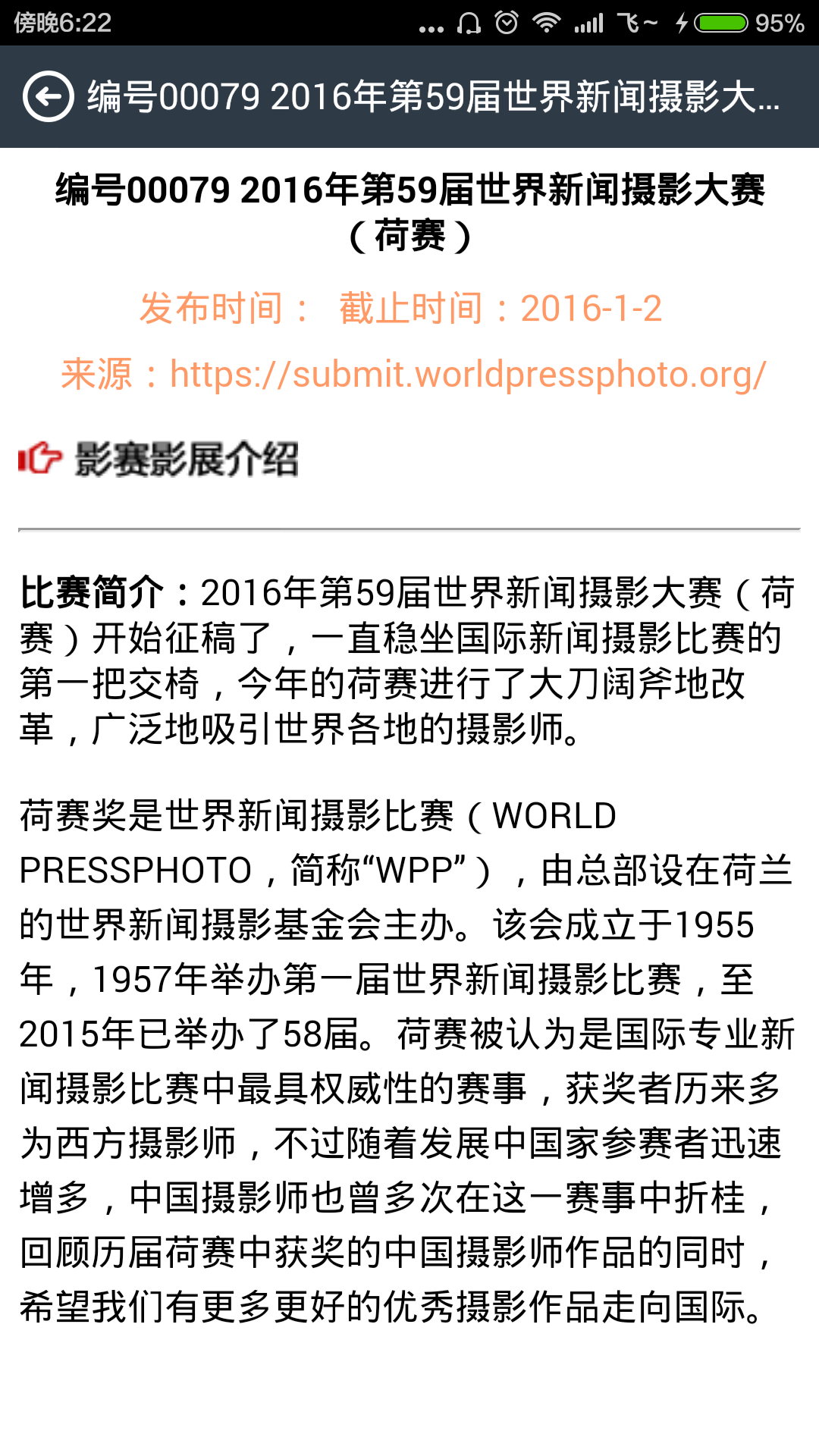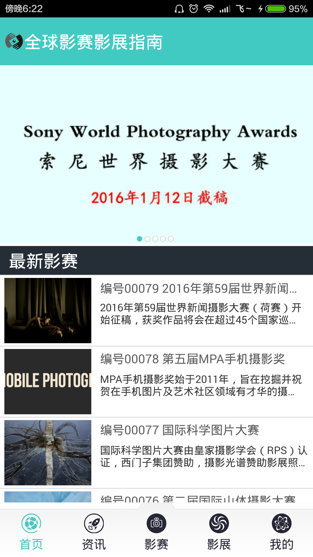 影赛指南是一款专门查询国内、国外影赛影展的专业安卓手机APP,在这里用户不不仅能及时及时查询的有关的影赛影展信息,还能直接参与投稿,我们还为您提供作品筛选,图片修整,文字翻译,代理投稿等高端服务,专业、专注、专心是我们的理念。