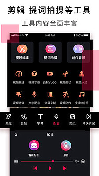 【万千素材】配音、音效、视频、音乐四大类素材;搞笑、欢快、柔情、伤感、励志、震撼磅礴等64个小分类素材大集合。未来素材将扩展到10万+以上,成为手机视频制作的素材和首选灵感来源。