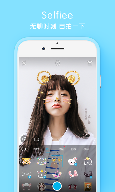 Selfiee,新一代自拍神器, 终于来了! 视频自拍新玩法!美萌动效,脑洞玩法,超炫背景……冲破次元壁、穿越到各种场景,自拍再也不无聊! Selfiee,集美貌与有趣于一身的自拍神器,更满足你对自拍的大胆想象,打造自拍的万种可能! 从此,美丽的你将向世人展示有趣的一面!