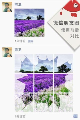 “从截图看得出,这个app能帮我把1张大图切成9张小图,这样我就能在微信朋友圈、新浪微博或QQ空间上上传这9张小图拼成1张9宫大图啦!” --可能是你