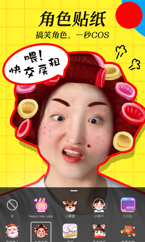 多种动态贴纸自动识别,完美融合你的面部,随心所欲拍出各种视频,妈妈再也不用担心你的道具不够用啦~