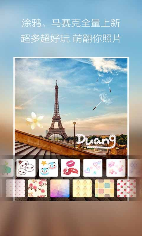 -集成了各种漂亮饰品、边框、有趣印章、自定义文字泡泡和时尚文字素材,便于用户创造富有个性的照片