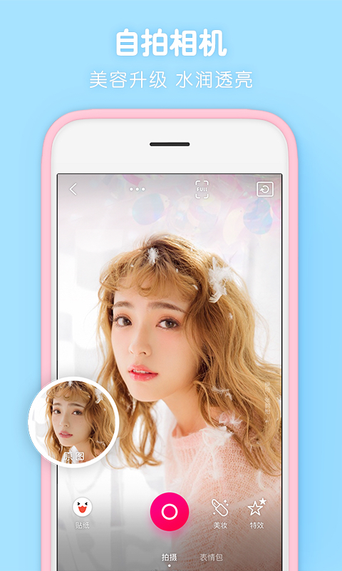 超萌,超好玩的自拍相机。专为人像定制的美颜滤镜,瘦脸大眼,实时美妆,让相机中的你美破天际。超多美萌动效贴纸,让你瞬间成为超卡哇伊的那个。当下流行的魔幻背景,手势触发,3D装饰,潮爆MV,应有尽有。
