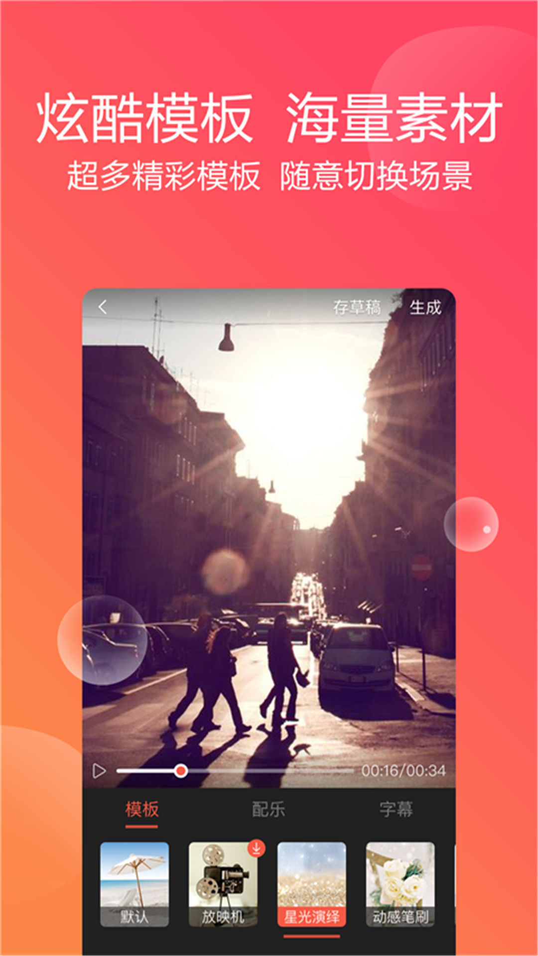2、【一键照做】共享多个剧本。模仿大咖作品,创造个人特色影片。互助成长,和朋友分享创意和感动。