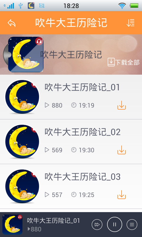 儿童有声故事是为父母量身定制的一款专门给宝宝讲故事的Android应用,百余部儿童故事合集、单本随便听,《吹牛大王历险记》、《黑猫警长》、《小鹿斑比》,轻松幽默的故事让宝宝在快乐的同时获得智慧,清爽的界面、流畅的播放、清晰的语音让宝宝和父母享受最优质的视听感官,同时支持下载功能,把你和孩子喜欢的故事赶紧下载下来吧。
