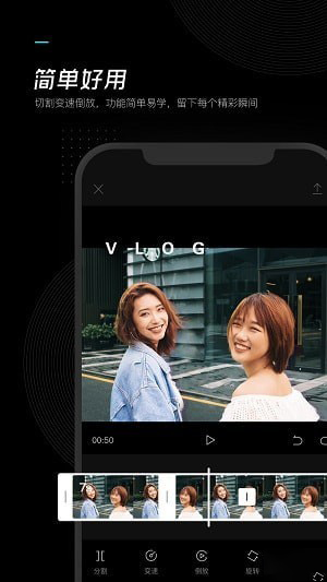 这是一款极简的视频编辑工具,让你轻松制作高逼格的vlog,就连软件本身也是体积小巧,没有花里胡哨的界面,直接将强大的编辑器呈现给你,并且简单好用,所有的功能简单易学,更有丰富的贴纸文本,独家背景音乐曲库,和超多素材,滤镜,特效等等内容,让每一个人都能制作出大片一样的精彩vlog。