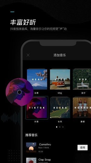 抖音独家曲库,海量音乐让你的视频更“声”动。