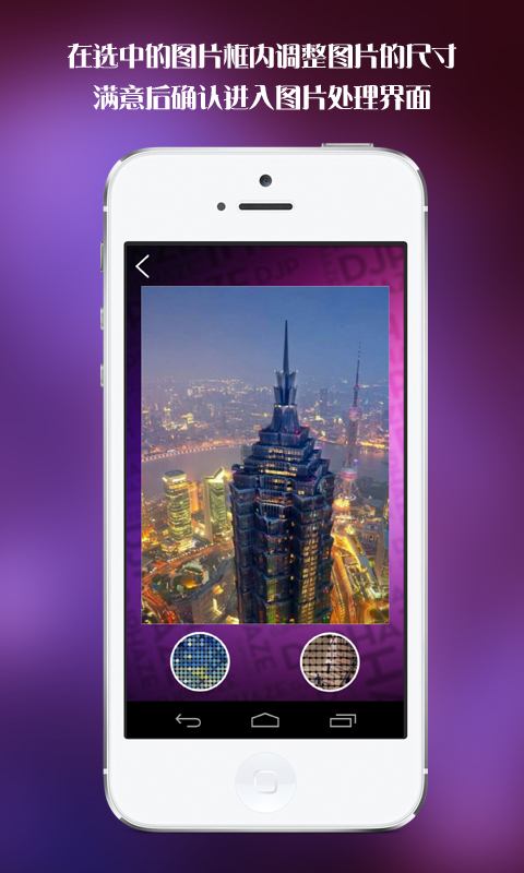 2.在选中的图片框内调整图片的尺寸,满意后确认进入图片处理界面。