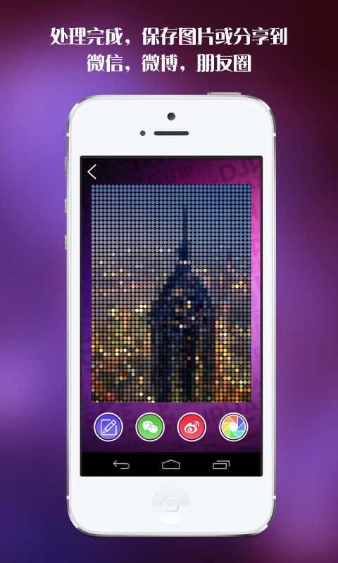 4.处理完成,保存图片或分享到微信,微博,朋友圈。