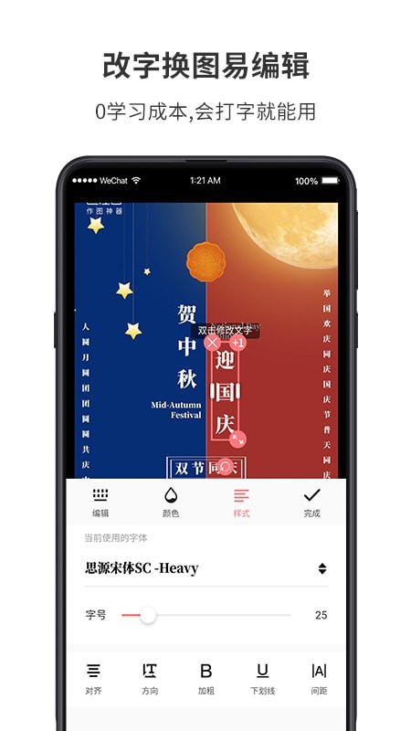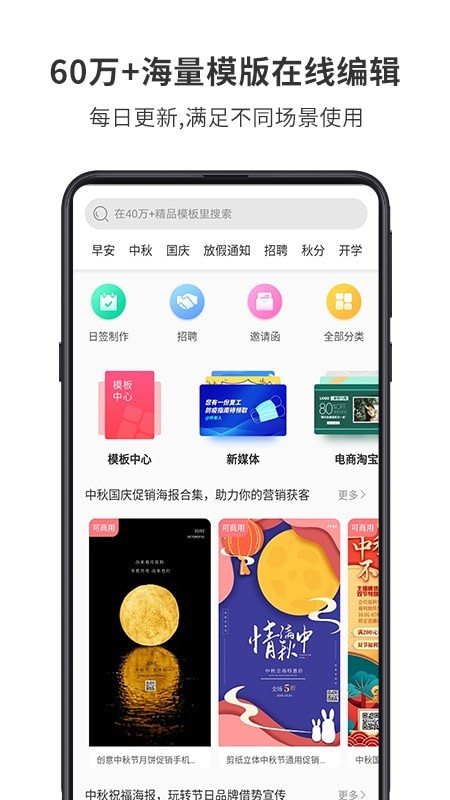 支持一键制作手机海报、营销长图、电商banner、淘宝店铺首页、公众号封面、名片等,满足您不同场景的设计需求。