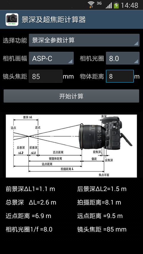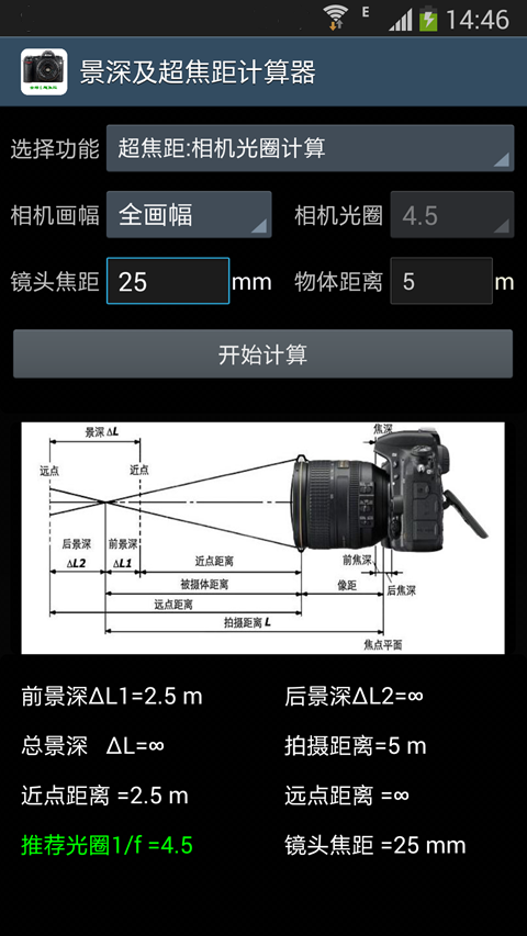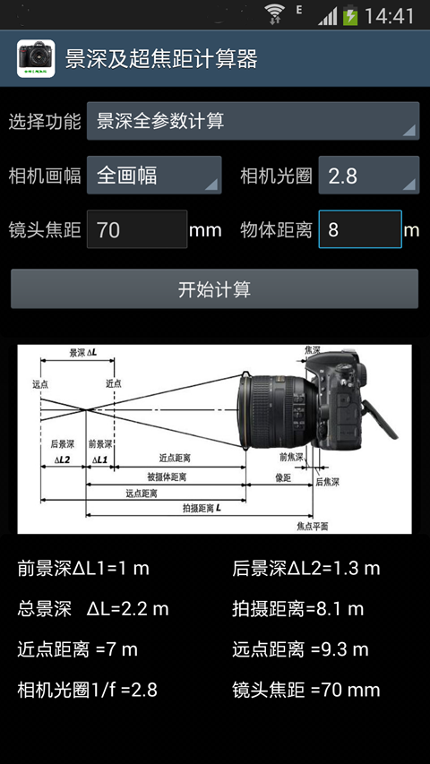 景深与超焦距app是计算景深全部参数外还可在超焦距下计算推荐使用的光圈、焦距、主体距离等参数,抛弃弃景深表,轻松定位超焦距点,计算景深全部参数外还可在超焦距下计算推荐使用的光圈、焦距、主体距离等参数,无论你是单反高手或是刚入手相机的小白,这个手机APP都是你不二的选择。