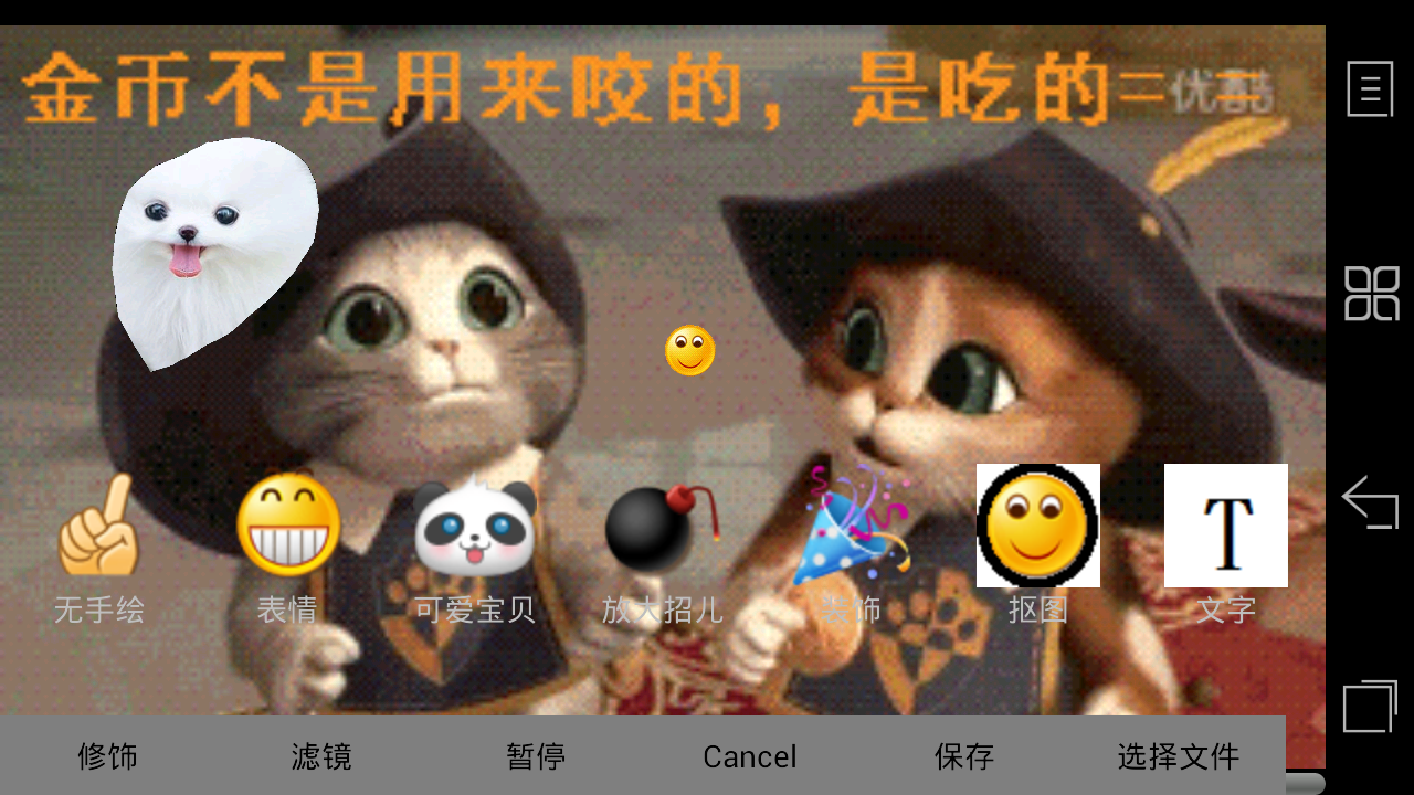 GIF+安卓版是一款便捷多功能的拍照类软件,像用拍照APP美化照片一样,录制、编辑您的gif,您可以给GIF增加表情、文字,还有独特的抠图功能,轻松地把别的图片中的元素加入GIF中,支持边拖动边录制,方便记录轨迹,方便的分享到微信,助您引爆朋友圈!