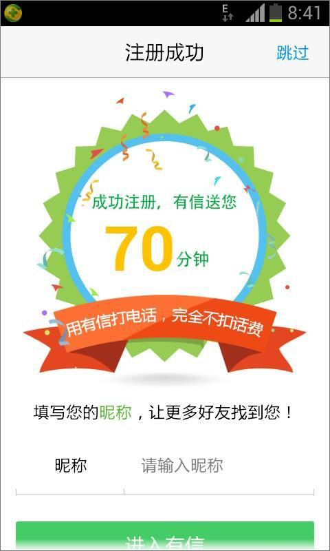免费网络电话拨打全国座机和手机。有信本身是免费的,使用有信拨打免费网络电话直拨时,通话中产生流量费大约每秒4K,使用网络电话回拨方式时,通话前流量小于1KB(通话中无流量费),流量费由运营商收取。用户可以以网络电话直拨方式直接呼叫对方手机/座机号码,实现VOIP网络电话方式通话,这里用户通常有两种“付费”通话方式:一是选择赚取免费话费,进入软件客户端的“赚话费”( iPhone为“送好礼”)菜单,里面的“每日签到”、“邀请好友”、“有奖反馈”等方式都可以轻松赚取大额免费话费。二是当某些通话达人获得的每日赠送话费不够用时,可以选择直接充值,“有信电话”支持包括网银、支付宝、财富通等多种方便快捷的话费充值渠道;“有信电话”直拨方式拨打国内所有手机和座机电话的标准通话资费每分钟只需要区区3分钱。