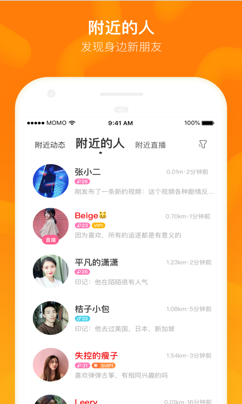 陌陌可以帮助拓展你的交际范围,而不仅限于熟人圈子,不管在任何时候、任何地点,你都可以在陌陌上认识你感兴趣的人。陌陌,让你发现身边志同道合的人。