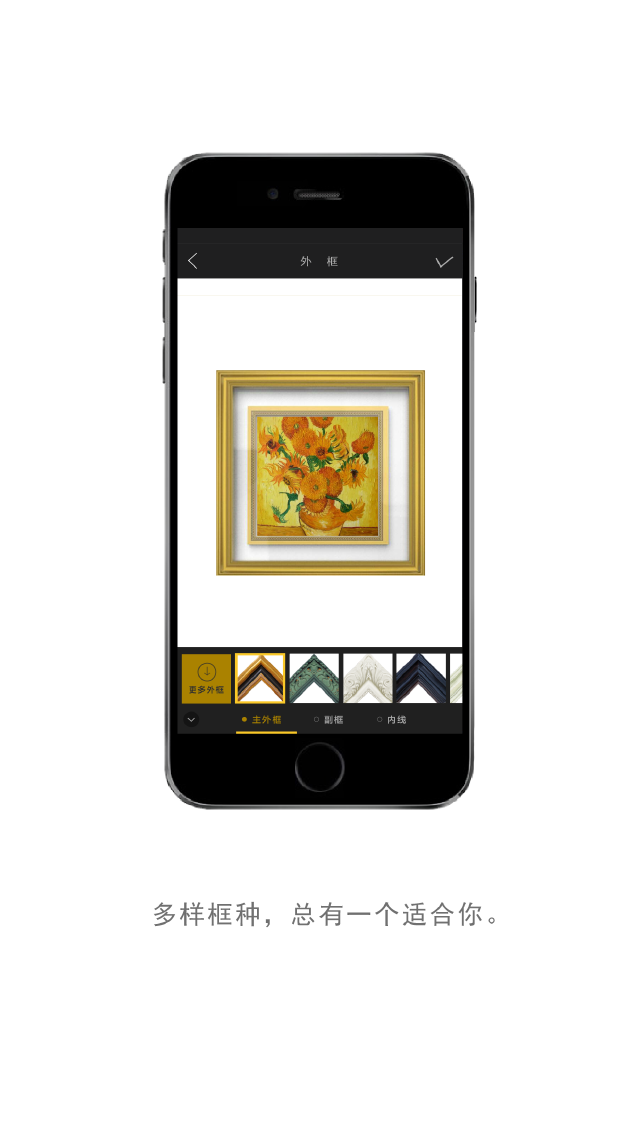 美框是一款为艺术家提供作品画框样式试配,为藏家、艺术品收藏爱好者提供作品装饰保护,为艺术品爱好者提供艺术交流,为大家提供相框及家装配框需求的移动互联网平台,为用户提供了丰富的相框样品,你可以为你的艺术品添加上不一样的相框,想得更加的别致。