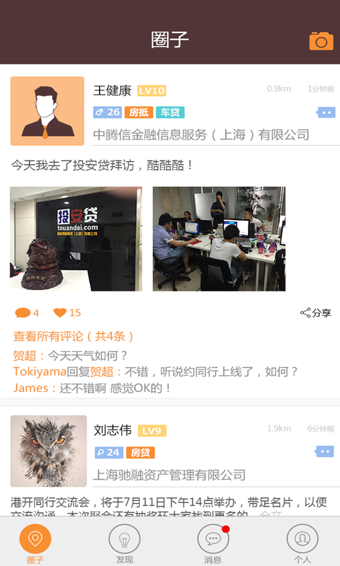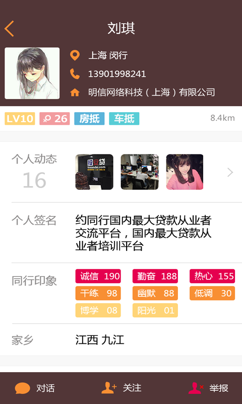 约同行是专为信贷经理量身打造的人脉管理工具,您可以通过该软件认识更多信贷经理,信贷经理必须经过实名认证才能成为“约同行”的用户,因此您可以放心和他人交流、甩单,不虞安全隐患,每一位信贷经理都有自己的专属名片和同行评价,让您一目了然,找附近同行展业、扩充信贷圈人脉,尽在“约同行”。