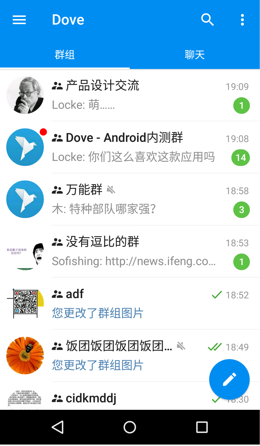 Dove 是专为群组而建的产品,希望打造最好的群组交流工具,你可以为你的兴趣爱好创建一个群组,为你的密友或家人创建一个群组,你可以在不同的群组里分享近况、发现新知,同时,你也可以发现并融入和你有共同话题的群组,结识新的朋友,为群组而建,物以类聚,人以群分。