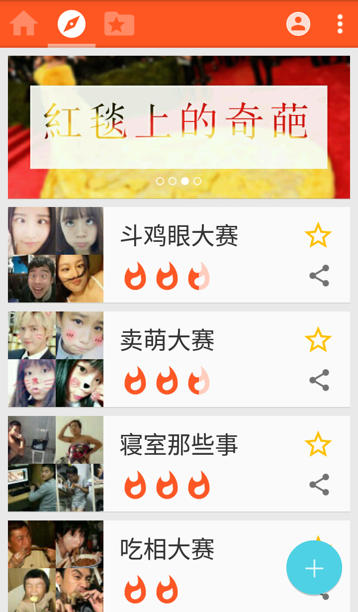 1、话题图片:用记忆唤醒记忆,逗逼催化逗逼,主题式图片分享,你总能发现自己喜欢的话题,也总能找到自己能表达的话题。