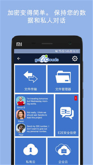 1、get2Clouds为您的对话和文件提供了一个安全的空间,并且为没有安全知识的用户提供复杂的加密世界的优势;