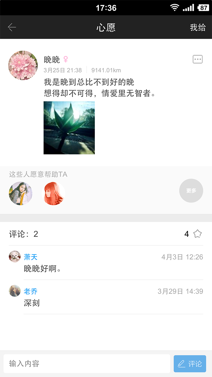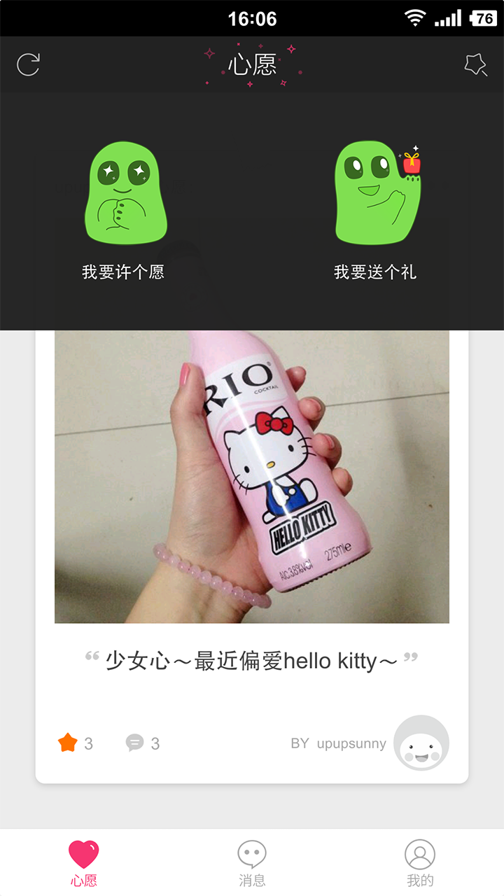飞礼是一款暖心的移动社交应用,你可以实现心中小小心愿,与志趣相投的人互换爱物,奉献点滴爱心体验助人的快乐,更可以从中结交许多有趣、有爱的朋友,是实现心愿的宝盒,是礼物互换的美好集市,是孤单的终结者,更是充满爱的温馨小屋,我们提倡对愿望的自由表达与彼此实现,希望营造健康有爱的青年人社交圈子,在这里你可以收获的不只是心愿的满足,只要心怀诚意,还可以寻获宝贵的友情甚至爱情。