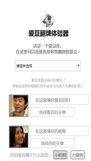 爱豆翻牌体验器app中粉丝们只要在其中输入自家爱豆的微博昵称、上传头像。