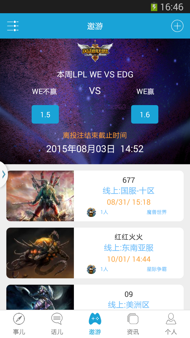 邀游是一款游戏社交软件,在这个平台上,只要搜索附近用户,就能找到附近的游戏玩家,通过这个应用认识更多的游戏玩家。