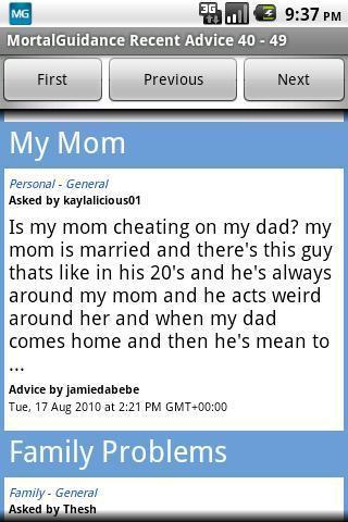 MortalGuidance咨询安卓版可以询问有关任何主题的意见,并立即从网上得到其他用户的生活意见!给来自世界各地的用户提供意见MortalGuidance.com功能的官方客户端要求咨询,获得建议,提供咨询,阅读的建议,咨询率,悄悄话和离线咨询收到的通知 。