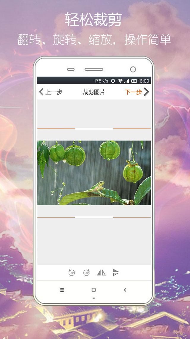 图片裁剪,滤镜处理,亮度、饱和度、对比度调节,图像混合。