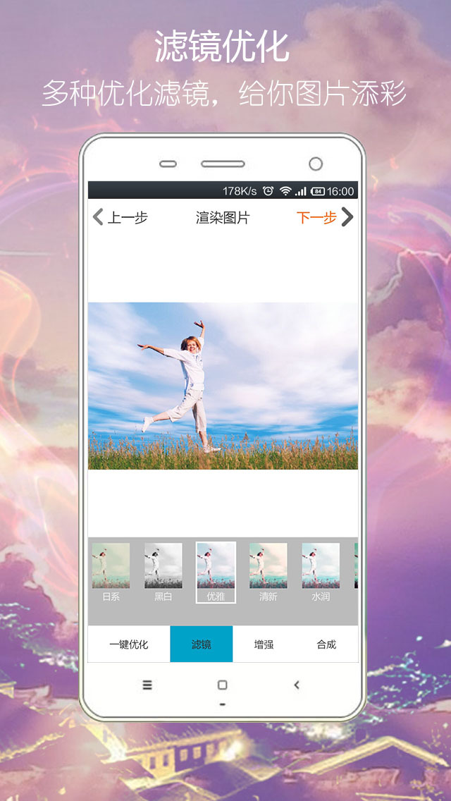 【滤镜处理】:多种精选滤镜,给你的图片增添色彩。