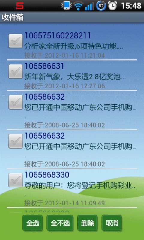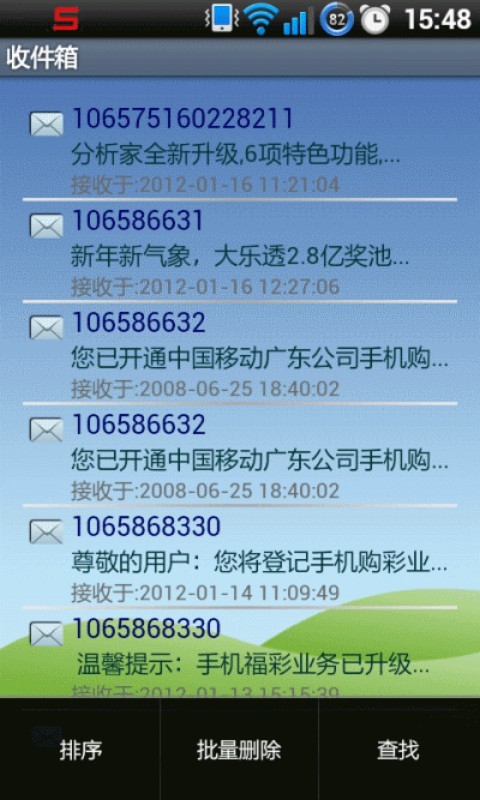 高效短信管理是最好的安卓短信管理工具,将短信分为收件箱﹑发件箱﹑删除短信﹑重要短信及常用短语几大目录,可对您的短信进行分类,批量删除等高效管理,是您管理短信的好帮手,再多的短信你也不必烦忧。