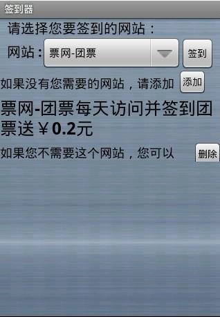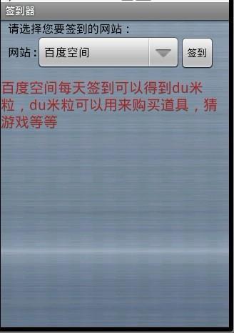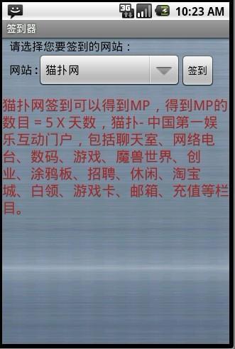 签到器应用收集了一些可以签到的网站,可以很方便的记住需要签到的网站,例如猫扑,百度空间,沪江等等,不仅可以赚到网站的积分,有些网站签到还可以赚钱。