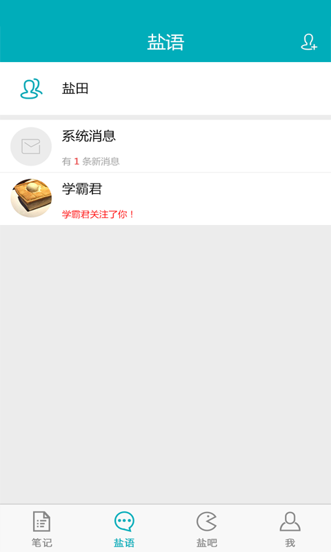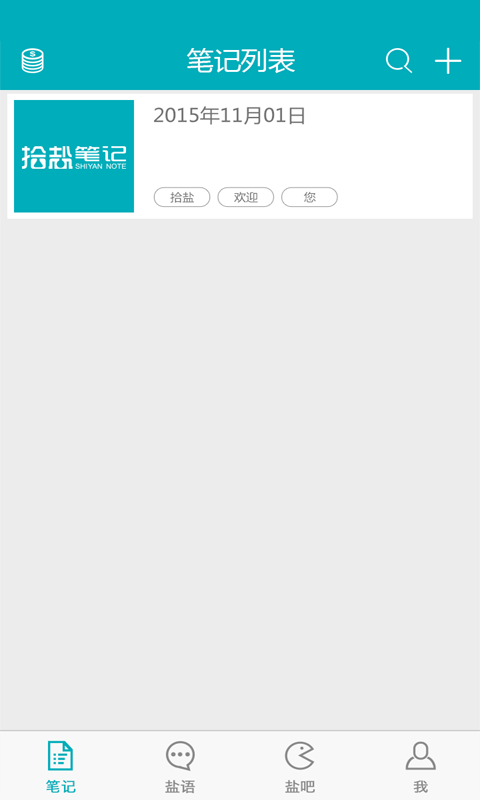 拾盐笔记三大功能:笔记、社交(盐语)、社区(盐吧)。