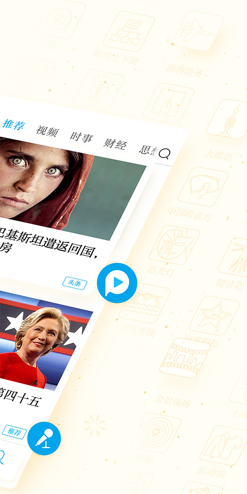 2、向左滑动,依次是问吧、时事、财经、思想、生活等默认栏目,您也可以点按右上角的图标来调整各版块的展示顺序;