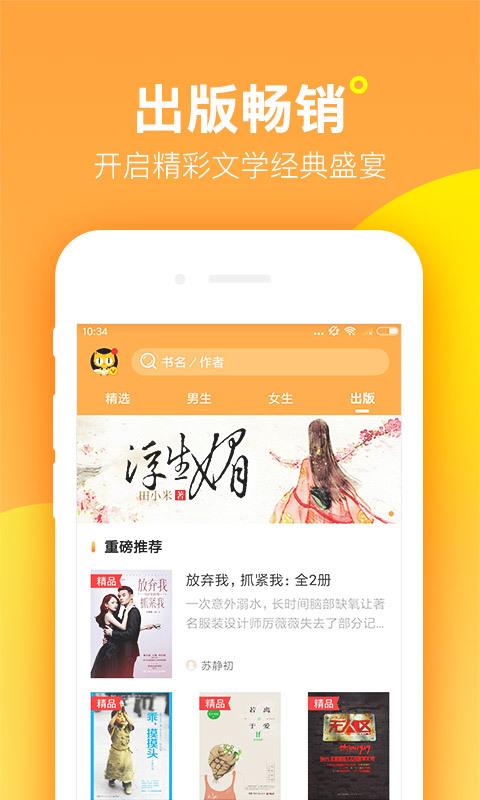 2、进入主界面后,点击下方第二个“精选”,就能看见为你推荐的小说