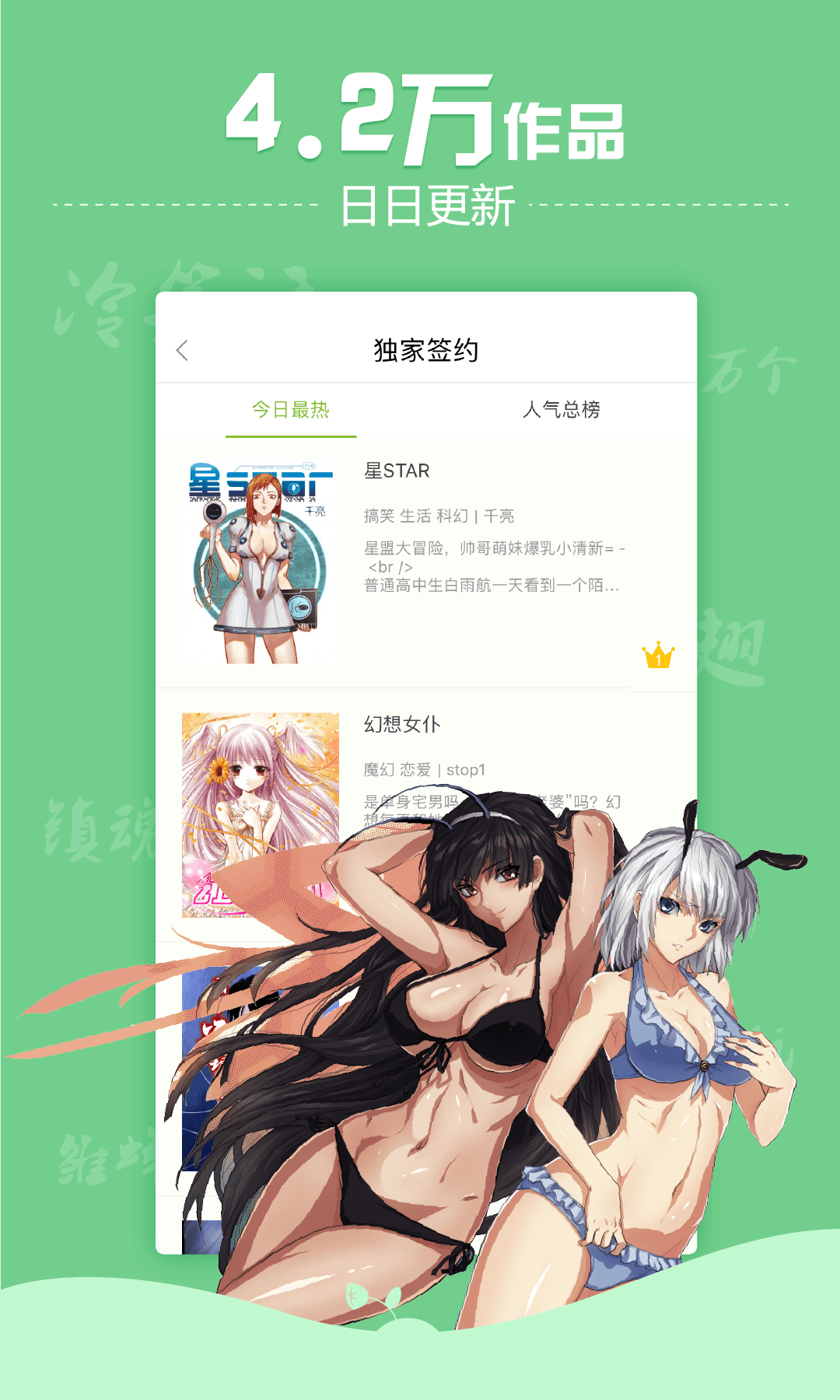 有妖气漫画,现象级大作《镇魂街》、《十万个冷笑话》被改编成动画、电影、真人剧、游戏等多种形式。更有《蓝翅》、《端脑》、《开封奇谈》、《雏蜂》等多部点击量超10亿的高人气作品,日更1000+页,哪里更新点哪里,一站追到底!