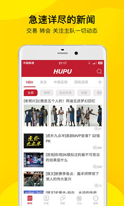对于体育爱好者来说,能随时随地掌握第一手的体育资讯,在第一时间刷新赛事比分是最重要的事情之一。在移动互联网还没兴起时,只有通过电脑或电视才能了解这些信息,但在移动互联网火爆的今天,只需要打开体育类App就可了解比赛资讯。虎扑体育App就是一款基于体育资讯的手机应用软件,在这里了可以观看最新的比赛盛况,可以刷新赛事比分,可以查看国际体育资讯等等。下面,我们就使用虎扑体育App来体验一把吧。