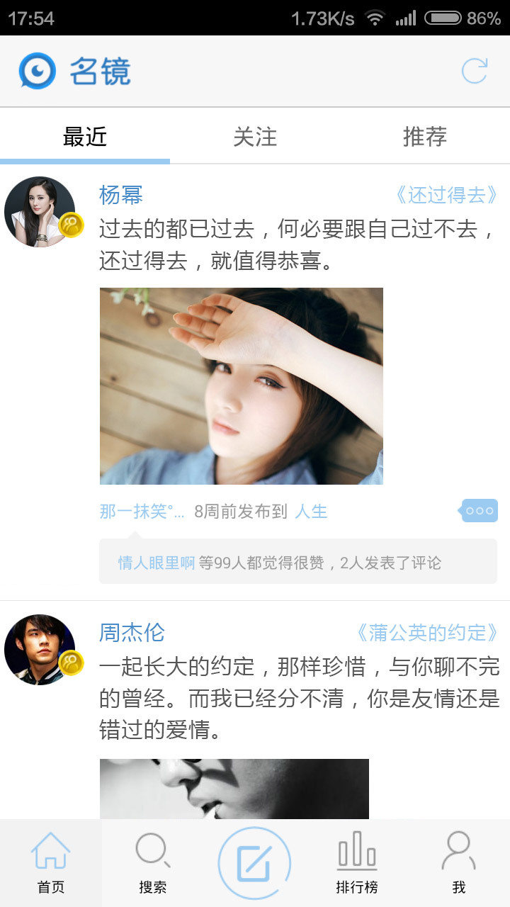 6、名镜收藏:一键轻松把美图美文收藏到个性化名辑中。名辑就像你的书签或电脑文件夹,随看随翻就如电子书。