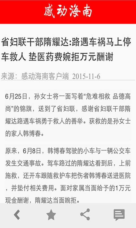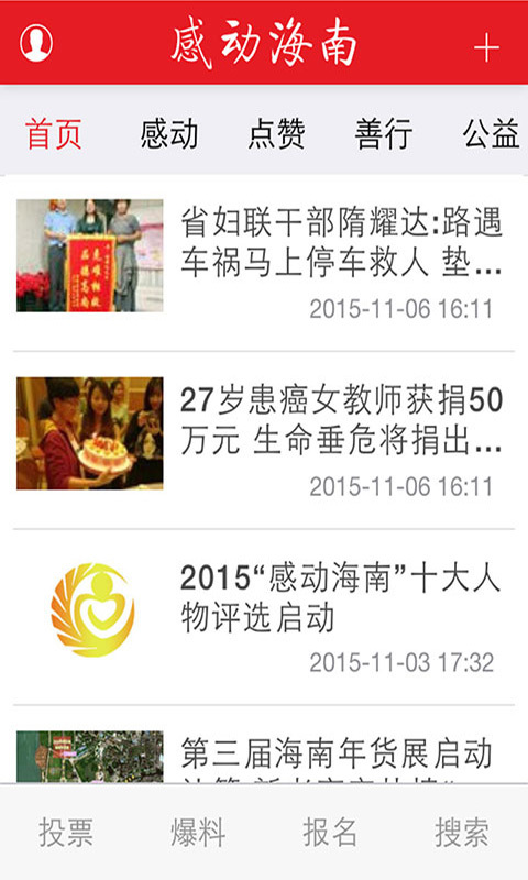 感动海南客户端是全国首个传播和弘扬社会主义核心价值观的公益客户端。由中共海南省委宣传部支持、海南日报报业集团主办,南国都市报承办。 它以公益为平台,以活动为引擎,以新闻为助推;传播正能量,评选好人物;是“感动海南十大人物”的“星光大道”,是系列好人好事评选的官方平台,是海南公益志愿者大本营,是爱心企业、人士的资源库,是帮扶救助的便捷通道。
