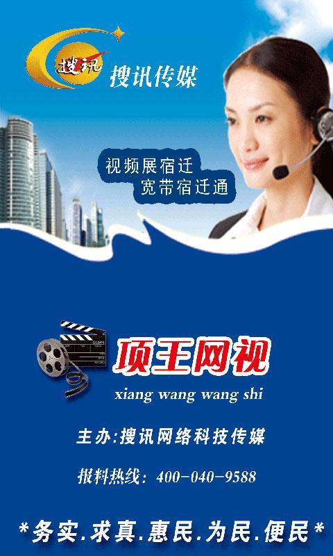 项王网视,是搜讯传媒专门为宿迁市民免费提供的一款日常移动视频手机客户端,该软件致力于打造务实、求真、惠民、为民、便民的功能,为人民提供更多方便的生活服务,操作简单,使用方便,功能强大,让宿迁市民可以随时时随地了解宿迁,关注宿迁!