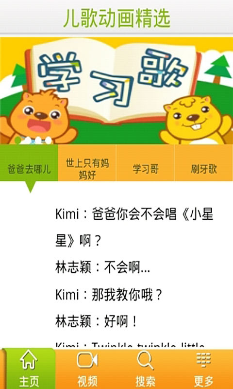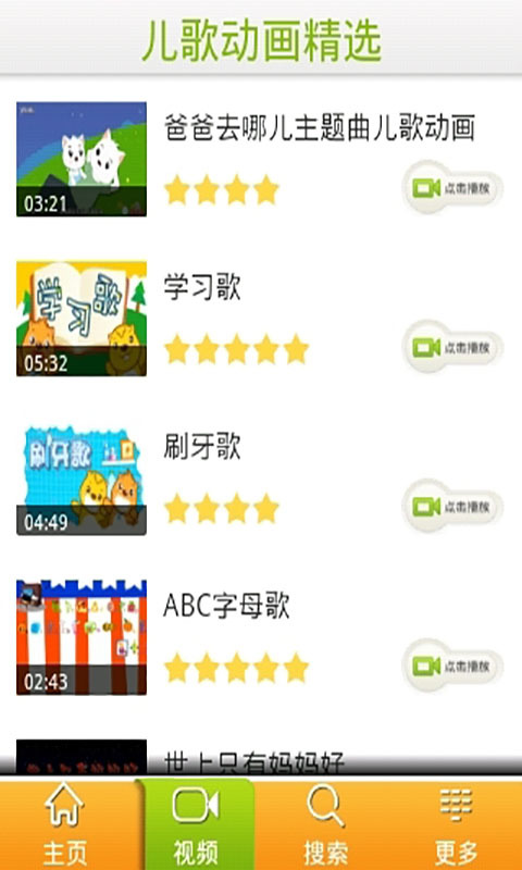 儿童动画精选app精选流传最广的经典儿歌,采用卡通动画的形式,唱词简单,音乐明快,发音清晰,非常适合幼儿模仿学习,可爱的卡通画面也能极大吸引儿童的注意力。