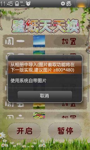 1、若从sd卡中选取的图片,请事先进行剪裁,建议尺寸为800*480.图片的剪裁功能将在下一版本实现