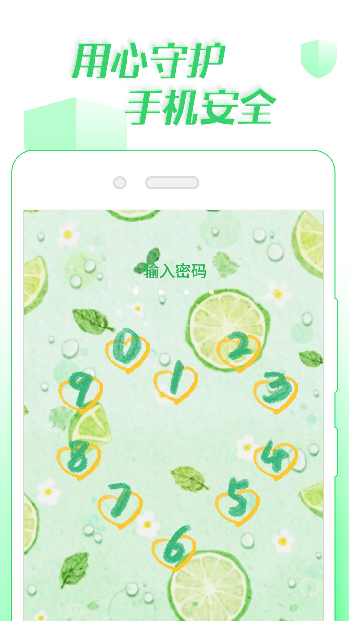 2、【密码保障】支持系统指纹锁,多彩图案文字心型个性密码锁,多种锁屏密码,保护你的隐私应用;