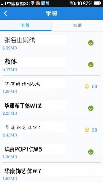 2、然后你就会看到许许多多的字体,选择一个最喜欢的吧,然后给与91桌面你手机的root权限,就可以改变手机的字体啦。