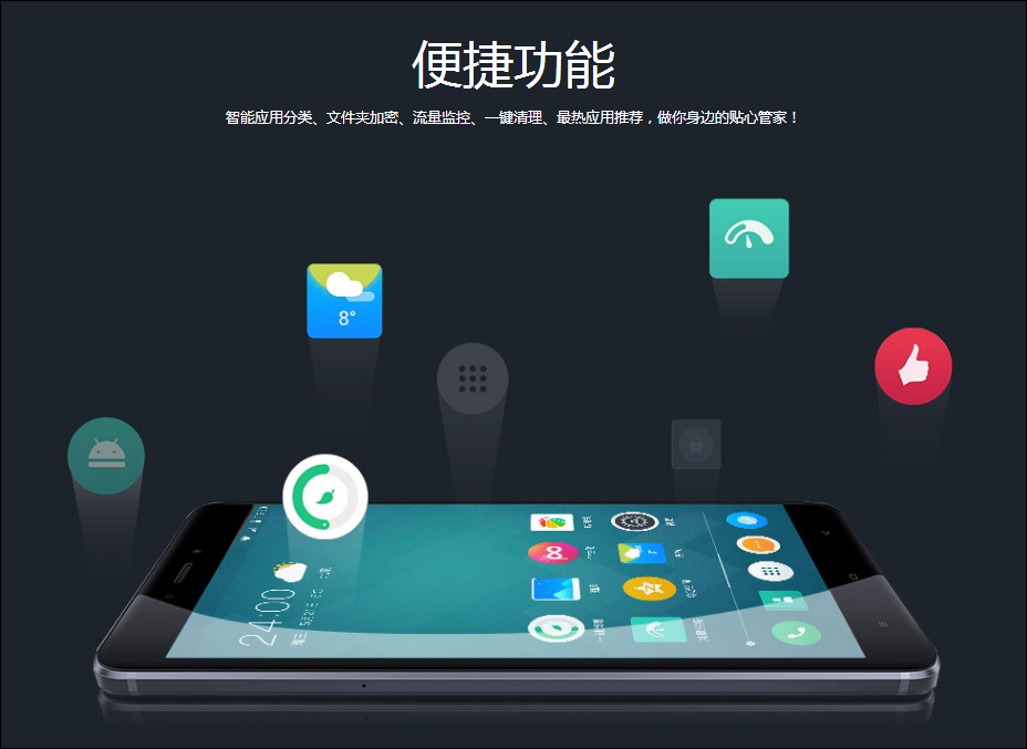 一键清理,流量监控、上网导航、天气提醒、省电模式、新闻资讯、美食专家、快捷手电筒等实用插件让你的手机变简单,更实用,还有快点悬浮让你启动苹果式的便捷模式。