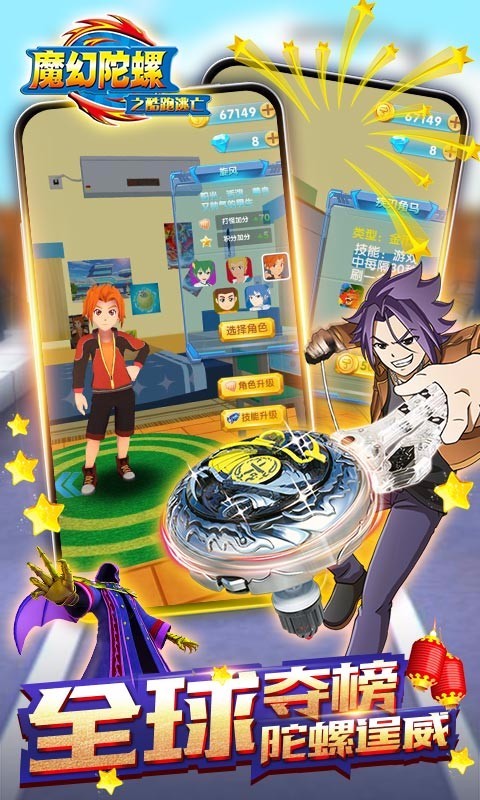 《魔幻陀螺之酷跑逃亡》是一款结合经典跑酷玩法和创新的陀螺玩法的3D跑酷手游。玩家控制人物在地图中躲避障碍物,并可控制人物触碰陀螺对敌人发起攻击;还可为人物携带斗兽辅助战斗;更可进行斗魂觉醒,释放人物的特殊技能,炫酷华丽!整个游戏充分结合原作动画的元素,加上对应设计的斗兽系统,让整个《魔幻陀螺》完美的呈现在玩家面前!