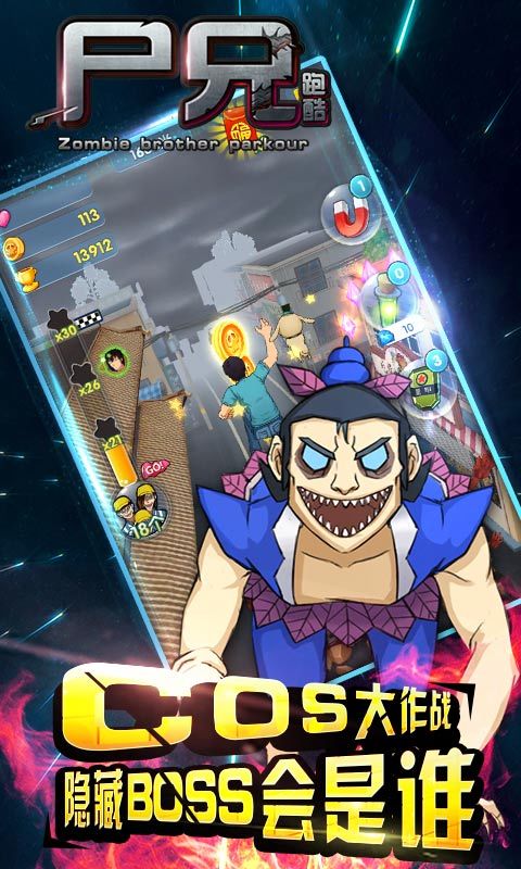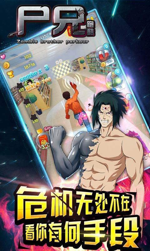 游戏操作简单,只要通过滑动屏幕即可对角色进行上跳、下滑、左移、右移的操作。但是,留给玩家的难题却又绝不简单,更有神秘Boss参与战斗阻挠玩家的去路,要想知道是谁在里面搞鬼就赶快加入《尸兄跑酷》!
