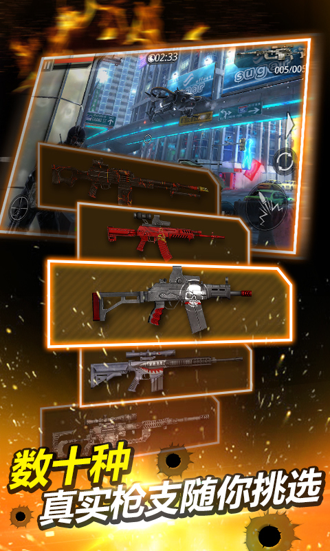 4、数十种武器满足你的作战需求!狙击枪、冲锋枪、散弹枪、轻机枪,随你改装,威力永无止境!