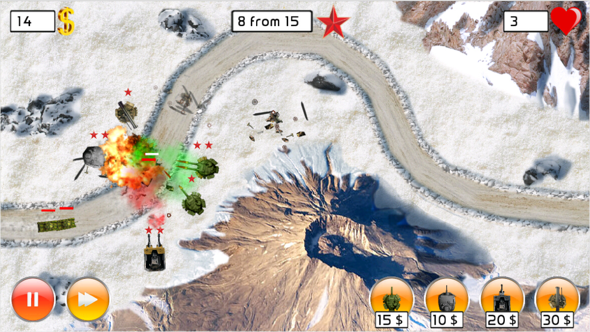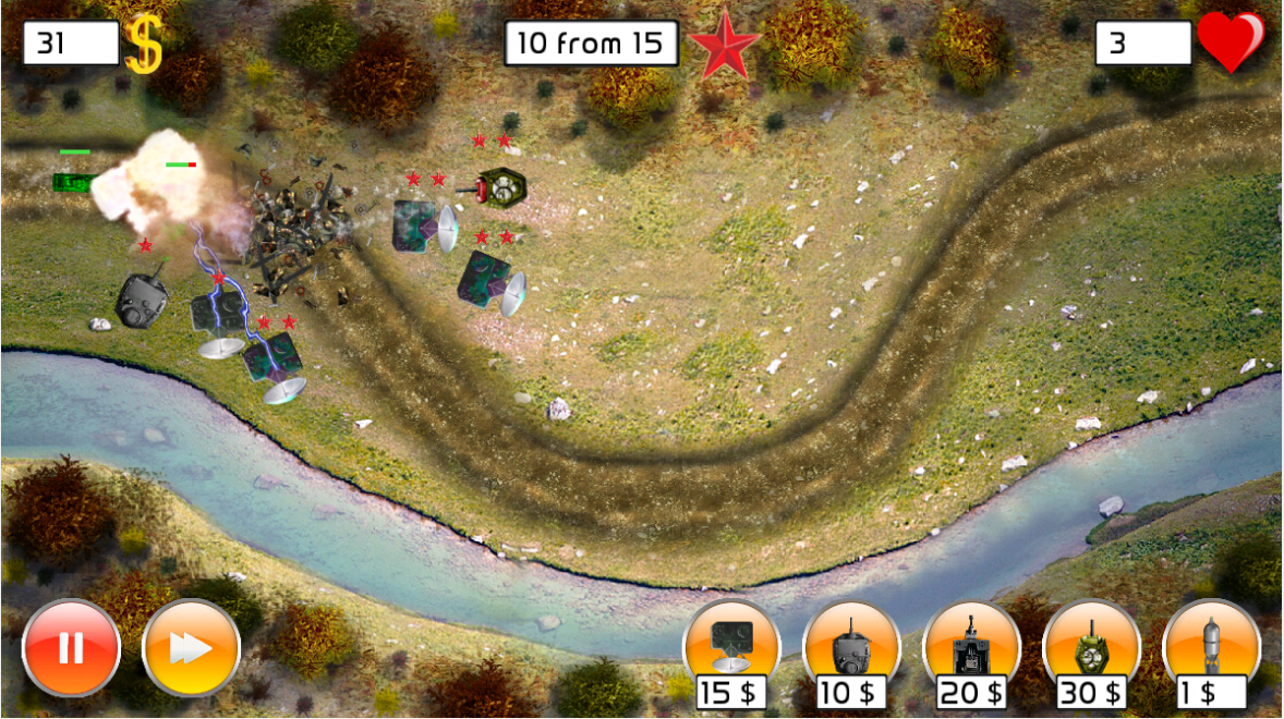 你可以利用各种先进的武器来攻击敌军。毒气,导弹,大炮!都能为你所用。对塔防感兴趣的可以试试~