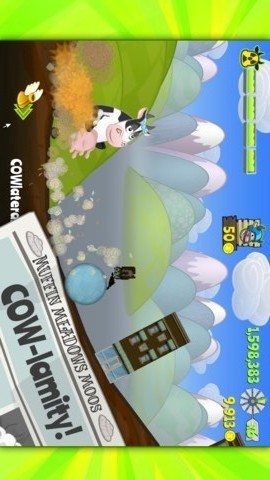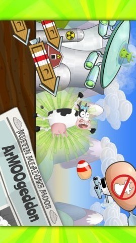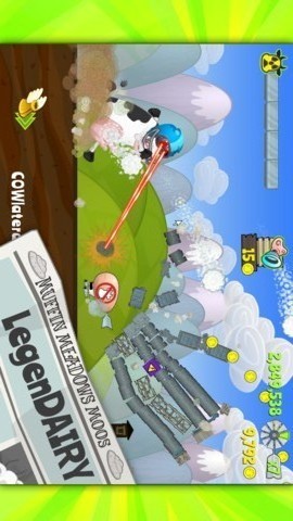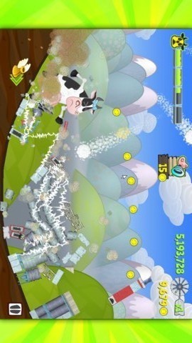 见过疯牛没见过疯奶牛,疯过之后不再产奶一路狂奔。一款诙谐有趣的跑酷游戏,因误吃超级粮草而变大变粗的奶牛是游戏主角,它的奶也因此从液体变为破坏力巨大,摧毁一切的炮弹。游戏玩法很简单,就是控制超级奶牛,用牛奶炮弹扫平道路,让超级奶牛一直跑下去。